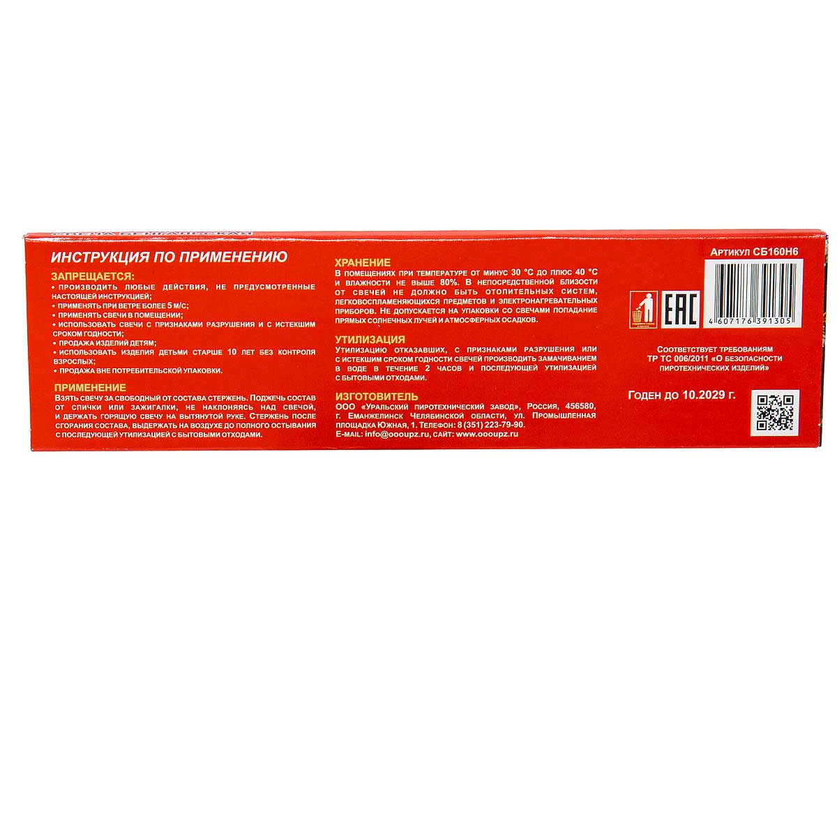 —Бенгальские огни 160 мм (6шт) новогодние УПЗ (280)