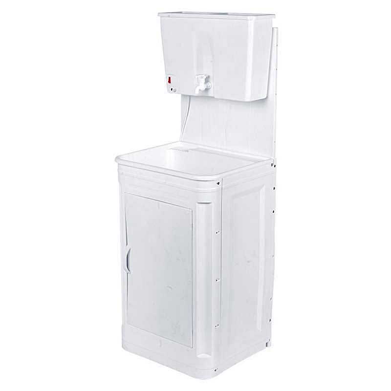 Умывальник садовый с водонагревателем на 17 литров с тумбой и раковиной рекомендуется для установки в помещениях с отсутствием центральной водопроводной системы. Можно использовать в дачных домах, на садовых участках и в местах с отсутствием воды. Умывальник оборудован наливным бачком с электронагревателем. Вместительность бака составляет 17 л.