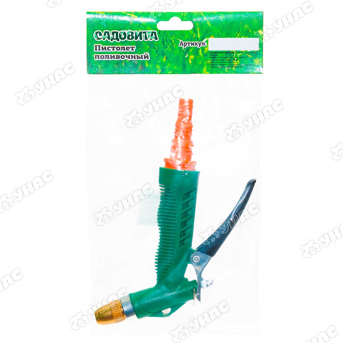 Пистолет представляет собой садовый аксессуар, предназначенный для полива растений и почвы. Выполнен из качественного и прочного пластика, устойчивого к воздействию внешних факторов. Имеет 2 режима подачи воды, регулируемых поворотной головкой.