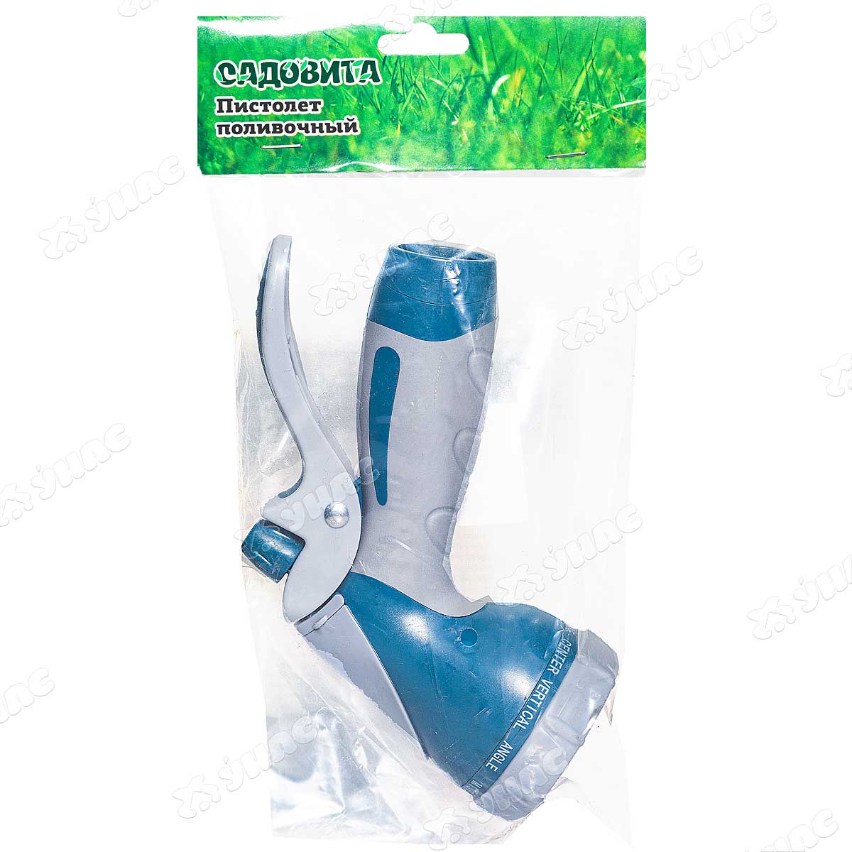 Душ-пистолет поливочный для использования с поливочным шлангом. Фиксатор и 7 режимов распыления облегчают процесс полива разных дачных культур.