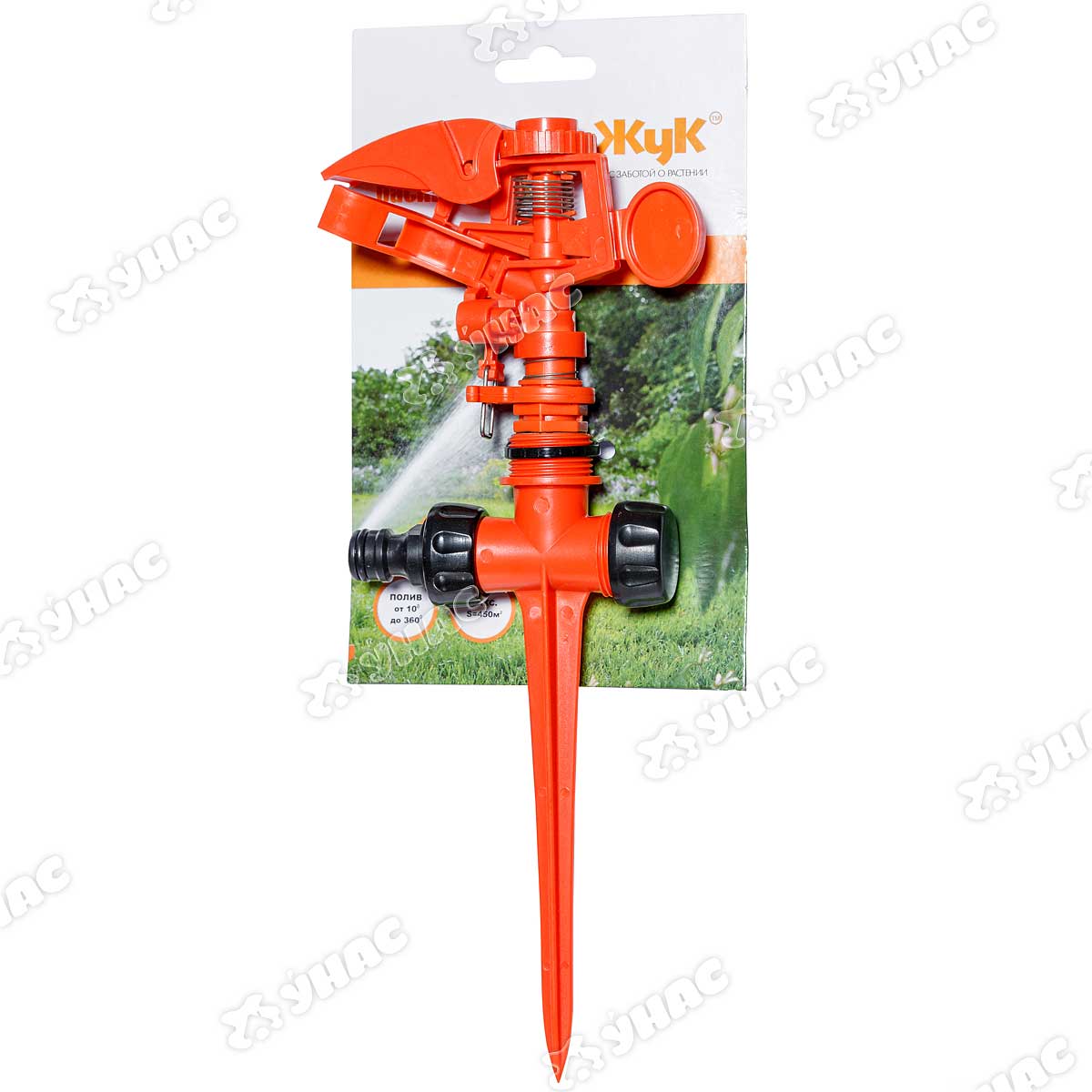 Импульсный распылитель используется для орошения больших секторов площадей. Возможность регулировки угла распыла обеспечивает качественный полив под деревьями и кустами.