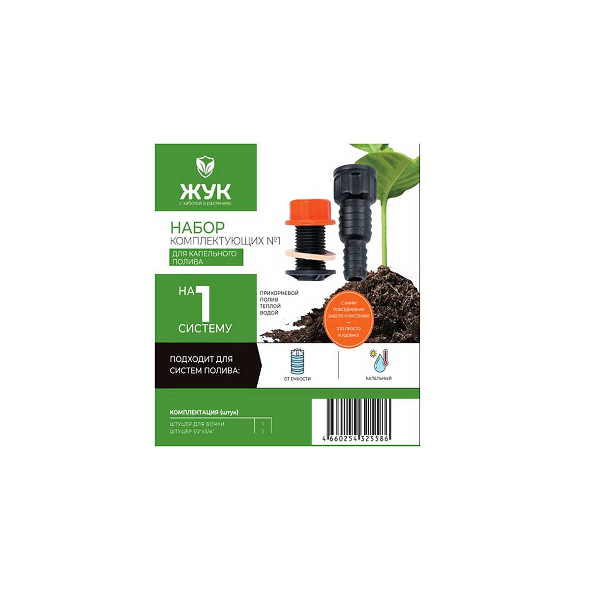 —————Набор комплектующих №1 для капельного полива (штуцер к бочке + набор штуцеров 1/2-3/4 от емкости) 325586-00