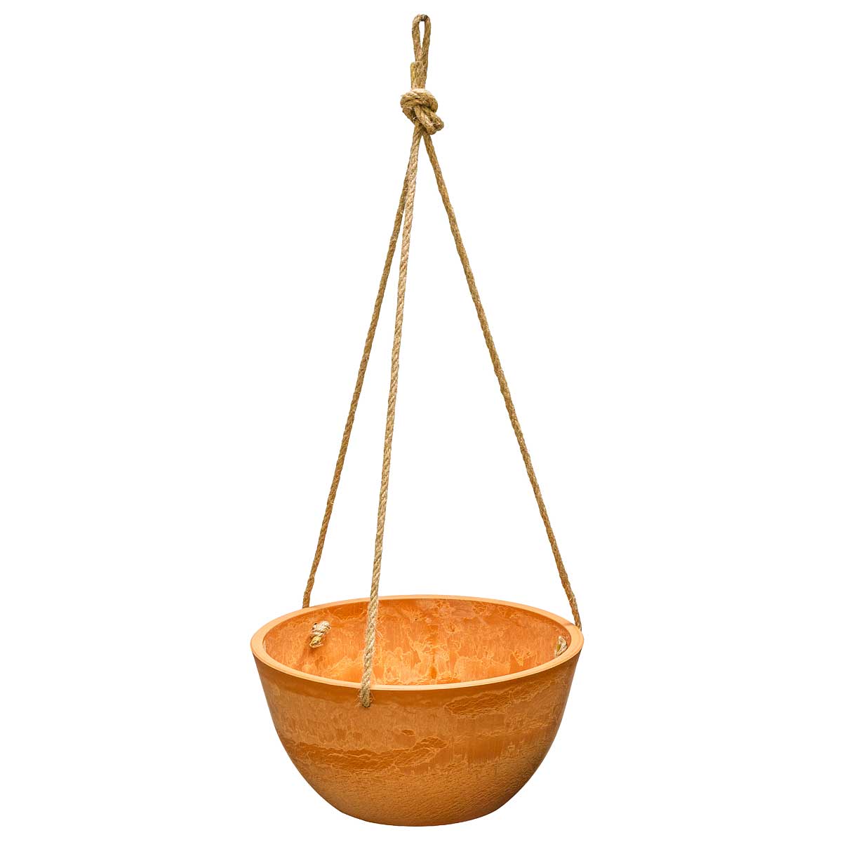 Подвесное кашпо для цветов стильного дизайна в виде Чаши (пиалы) с оригинальной текстурой «под камень» укомплектовано веревкой -бечевкой - отличный вариант для уличных и комнатных растений представлено в пяти цветах: бежевом, терракотовом, сером, светло сером и голубом. Подвесное кашпо для цветов изготовлено из специализированного пластика, в состав которого входит молотый камень, древесная мука с полимерами. Материал ударопрочный с толстыми стенками, морозостойкий и на солнце не выгорает. Небольшой вес для 4 литрового горшка позволяет легко подвешивать его в нужные вам места. Данный вид кашпо можно применять для дома и сада отличается особой практичностью и надежностью. Идеально подойдет для посадки петуньи, суккулентов, орхидеи, рассады, для комнатных и уличных растений, трав, трав для питомцев, цветов. Станет прекрасным декором и предметом любого интерьера.