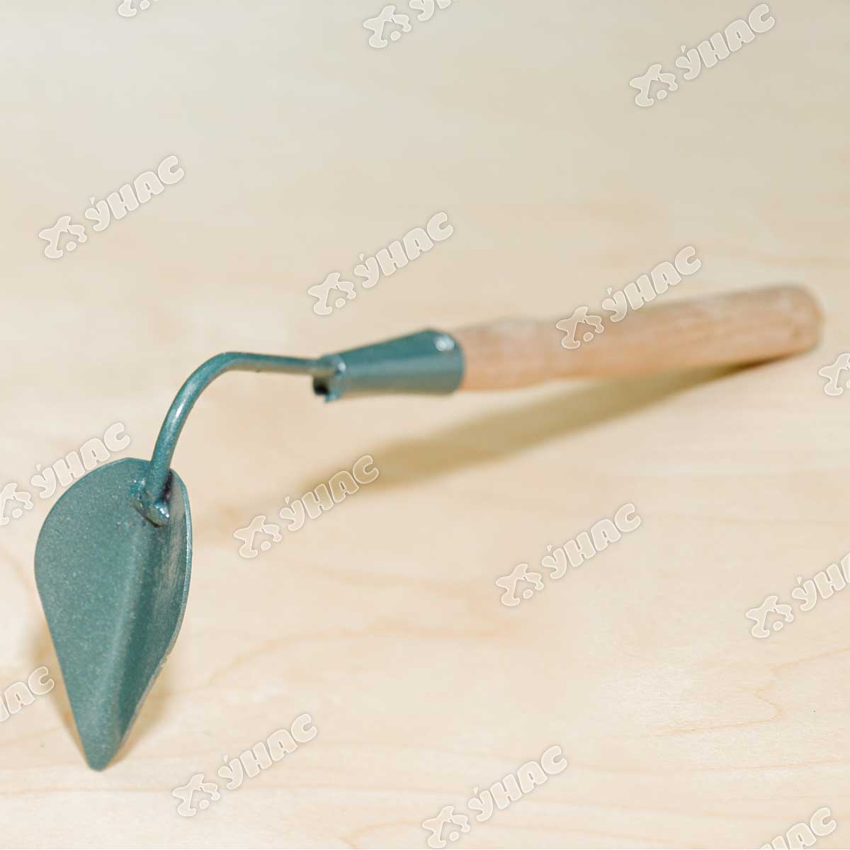 Бороздовичок, изогнутое крепление, деревянная рукоятка используется для формирования борозд во время посадки семян. Рабочая часть выполнена из стали, рукоять из дерева.