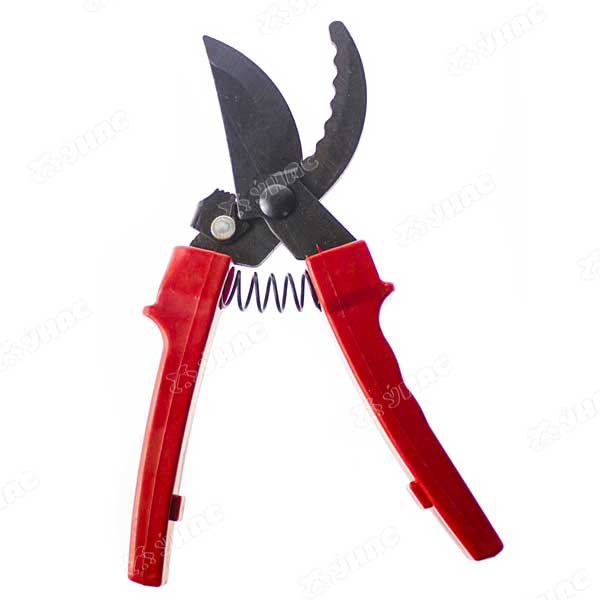 Инструмент выполнен из качественной высокоуглеродистой стали, лезвия остро заточены. Оставляет ровный срез, не травмируя растение. Оснащен удобным фиксатором для обеспечения безопасности. Стальные рукоятки покрыты слоем ПВХ для защиты от скольжения.
