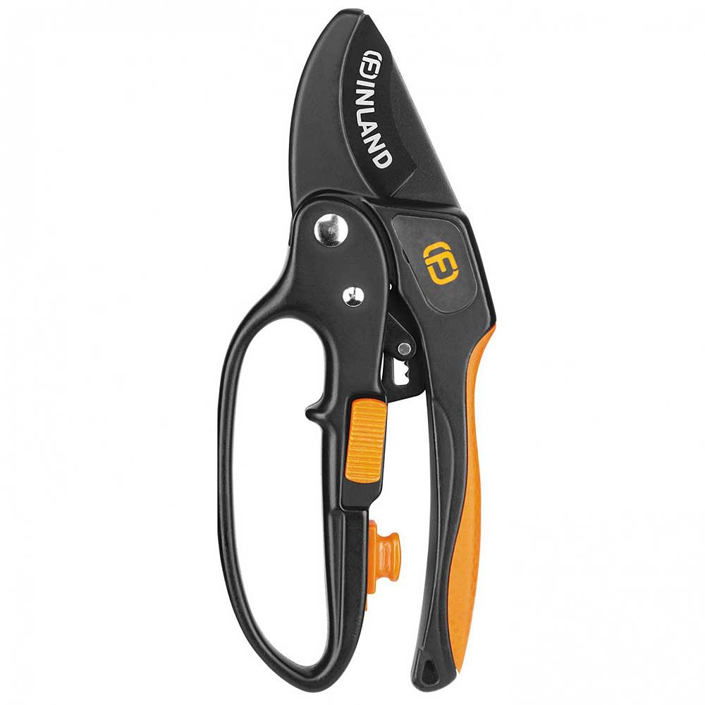 Секатор с храповым механизмом оснащается встроенной масленкой, которая позволяет успешно работать с сухой древесиной. На одной из рукояток располагается эфес для защиты ладони. Храповый механизм снижает усилие.