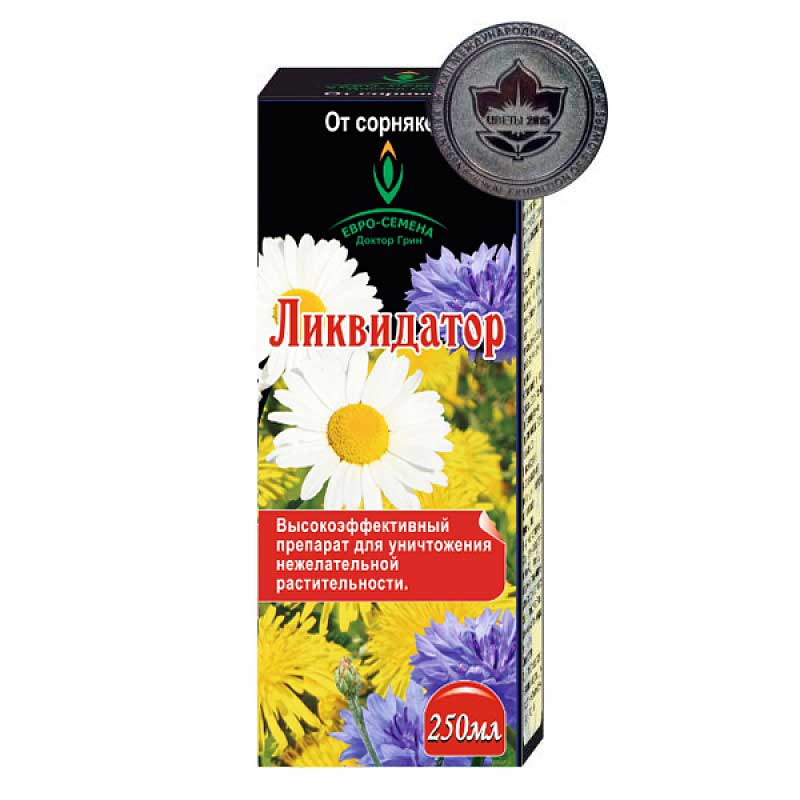 Средство «Ликвидатор» уничтожает всю растительность, включая наземные и подземные части на землях сельскохозяйственного и несельскохозяйственного пользования. Не обладает почвенной активностью. Состав: глифосат, водный раствор. Рекомендации по применению Плодовые, цитрусовые культуры. Обрабатываемый объект: однолетние злаковые и двудольные сорняки. Доза применения: 80мл/10л воды. Способ применения: опрыскивать вегетирующие сорняки в ранние стадии роста от 5 до 10-15см при условии защиты культуры. Расход - 5л/100м2. Виноградники. Обрабатываемый объект: многолетние злаковые и двудольные сорняки. Доза применения: 120-60 мл/10л воды. Способ применения: опрыскивать вегетирующие сорняки в ранние стадии роста от 5 до 10-15см при условии защиты культуры. Расход - 5л/100м2. Картофель. Обрабатываемый объект: однолетние и многолетние злаковые и двудольные сорняки. Доза применения: 40-60 мл/5л воды. Способ применения: опрыскивать вегетирующие сорняки за 2-5 дней до появления культуры. Расход - 5л/100м2 . Участки под посе
