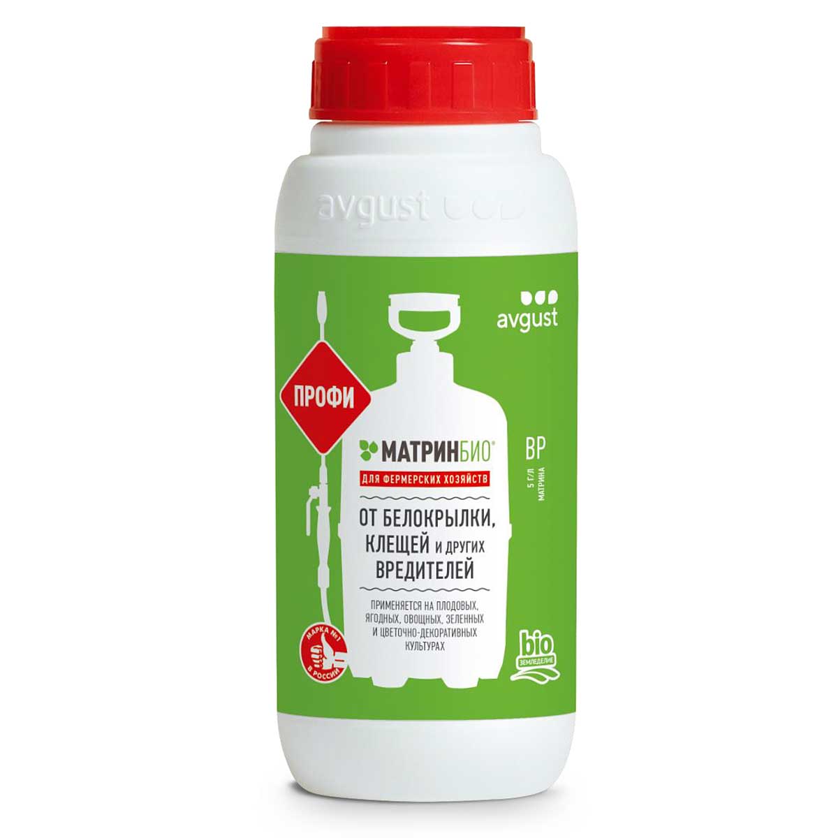 МатринБио - уникальный биопрепарат для защиты овощных, плодовых культур и винограда от широкого спектра вредителей. Высокоэффективен против клещей (войлочный клещ (зудень), паутинный клещ и другие), тепличной белокрылки, тли, трипсов, цикадок, совок, гроздевой листовёртки и прочих. Состав препарата имеет растительное происхождение, благодаря чему безопасен для растений, человека и окружающей среды. Не вредит хищным клещам - энтомофагам, которые избавляют растения от вредителей. Насекомые и клещи, после контакта с препаратом, снижают двигательную активность, перестают питаться и погибают за 3-5 дней. Матрин Био воздействует на разные стадии развития вредителей, уничтожает даже яйцекладки. Защитный эффект продлится не менее 14 дней. Благодаря натуральным экологичным компонентам собирать и употреблять урожай в пищу можно уже через 3 дня после обработки. Применять биологический инсектоакарицид МатринБио нужно согласно инструкции. Приготовление рабочего раствора производится путём разведения препарата сначала в не