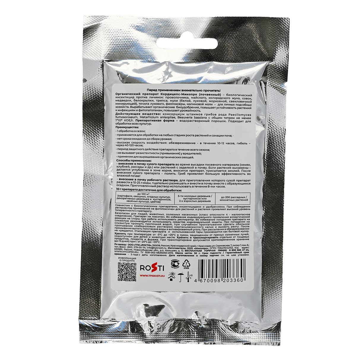 Биоинсектицид КОРДИЦЕПС ОБРАБОТКА ПОЧВЫ 30г (50/300) ТУТ БИО - это биологический почвенный инсектицид, разработанный на основе гриба Paecilomyces fumosoroseum. Он предназначен для борьбы с личинками колорадского жука, майского жука, проволочника, медведки, личинок белой мухи, совки и других вредителей.