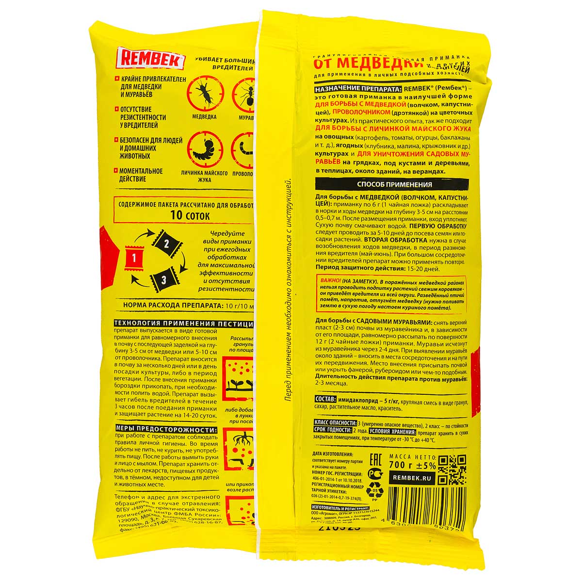 Препарат полностью готов к применению, и после вскрытия упаковки, достаточно дозированно обработать почву согласно инструкции. Первую обработку проводить за 5-10 дней до посева или посадки растений, вторую ― в случае появления ходов медведки, в период их размножения (май, июнь). Для борьбы с медведкой приманку по 2-4 г ( 0,5 чайной ложки), разложить в норки и в ходы медведки на глубину 3-5 см на расстоянии 0,5-0,7 м, после чего вход уплотнить. Если почва сухая, промочить водой.