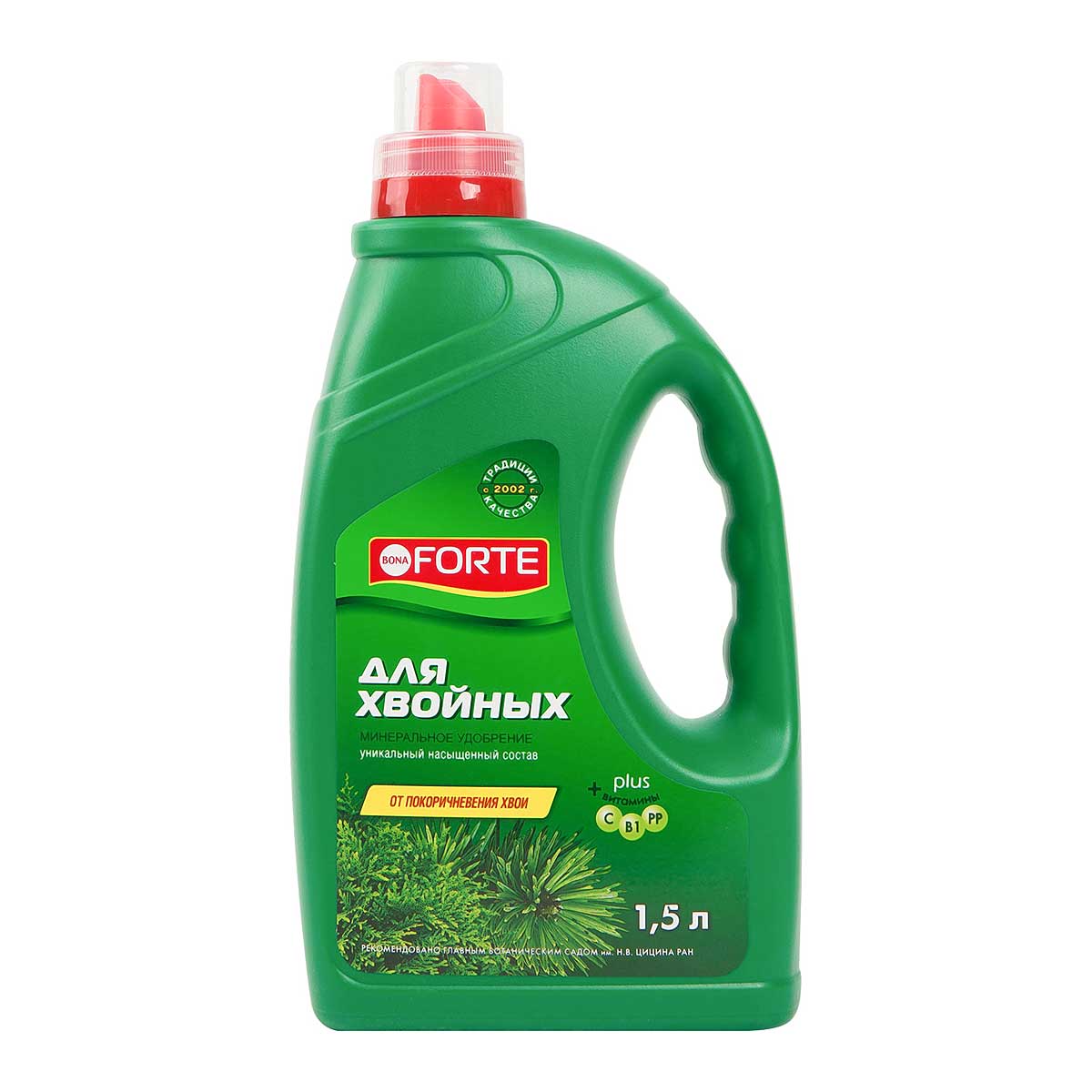 Минеральная подкормка для елей, сосен и туй. Пихты, можжевельника, кедра. Кипариса, тиса и лиственницы. Минеральное удобрение для открытого грунта создано лабораториями Bona Forte для усиления декоративности и стимулирования роста растений. Подходит для профилактики поражения хвойных растений короедом-типографом. Удобрение содержит полный комплекс веществ, необходимых для питания растений. Основные макроэлементы для обеспечения жизнедеятельности растений: магний, способствующий процессу фотосинтеза и уменьшению покоричневения хвои и обеспечивающий яркость и зелень иголок; микроэлементы в хелатной форме. которая способствует полному усвоению и их пролонгированному действию. Витамины ускоряют рост, повышают декоративные свойства хвойных культур. Благоприятно влияют на темпы развития растений. Препятствуют осыпанию иголок. Янтарная кислота активирует основные процессы роста и развития, повышает иммунитет растений. Расход одного флакона при корневой подкормке: 225 литров раствора. Неиспользованный готовый рабочий