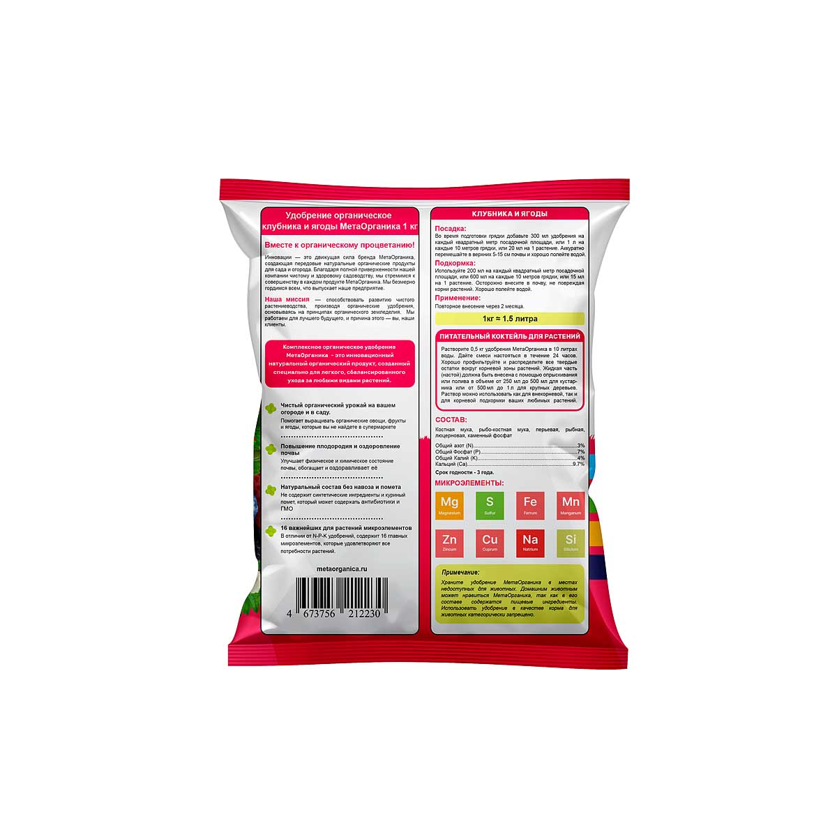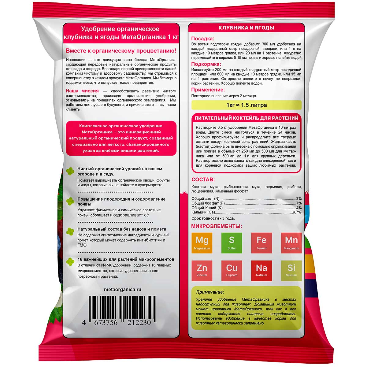 Специализированное гранулированное органическое удобрение Метаорганика «Клубника и ягоды» – это уникальный продукт, разработанный для обеспечения ягодных культур всеми необходимыми питательными веществами. Удобрение создано на основе натуральных компонентов, что делает его безопасным для почвы, растений и окружающей среды. Оно идеально подходит для выращивания клубники, садовой земляники и других ягодных культур, способствуя их здоровому росту, обильному плодоношению и улучшению вкусовых качеств ягод.