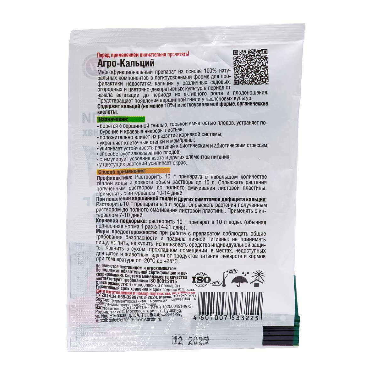 Многофункциональный препарат на основе 100%-ых натуральных компонентов для профилактики недостатка кальция у различных садовых, огородных и цветочно-декоративных культур в период от начала вегетации до периода их активного роста и плодоношения. Предотвращает появление вершинной гнили у пасленовых культур.