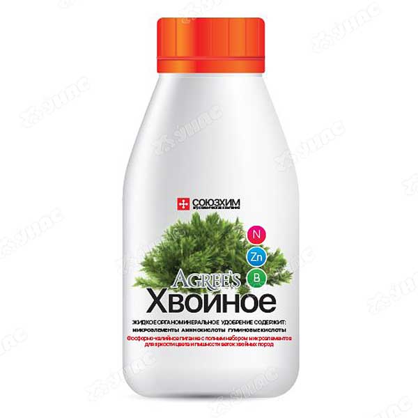 Удобрение органоминеральное Agree's "Хвойное", 0,25 л Насыщенное фосфорное питание с полным набором микроэлементов для яркости цвета и пышности веток хвойных пород.