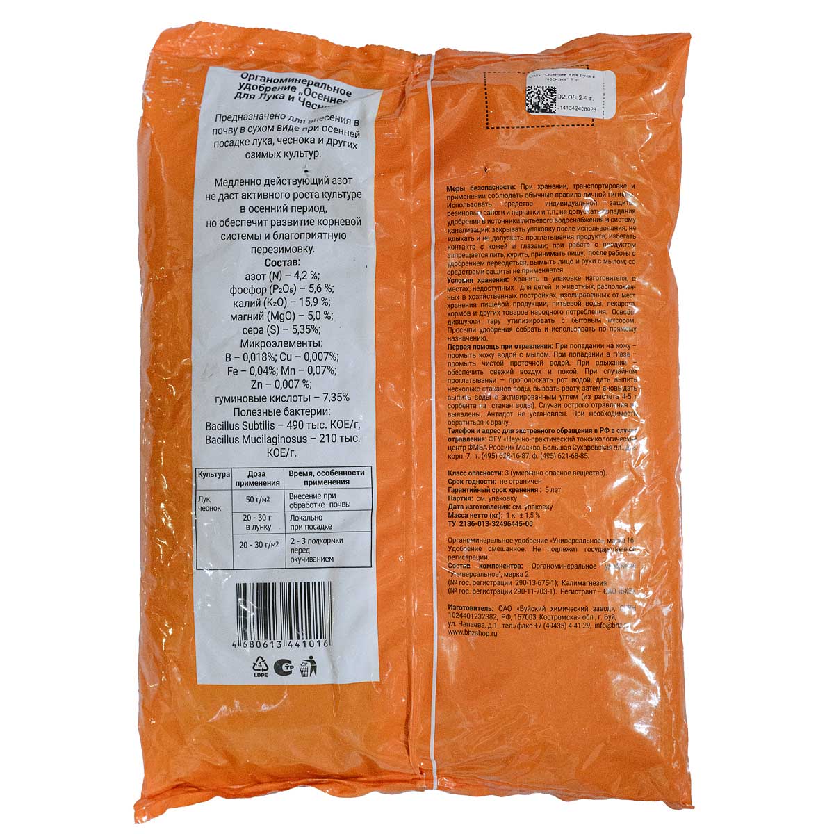 Предназначено в качестве основного удобрения для лука и чеснока, а также для подкормок в период вегетации.