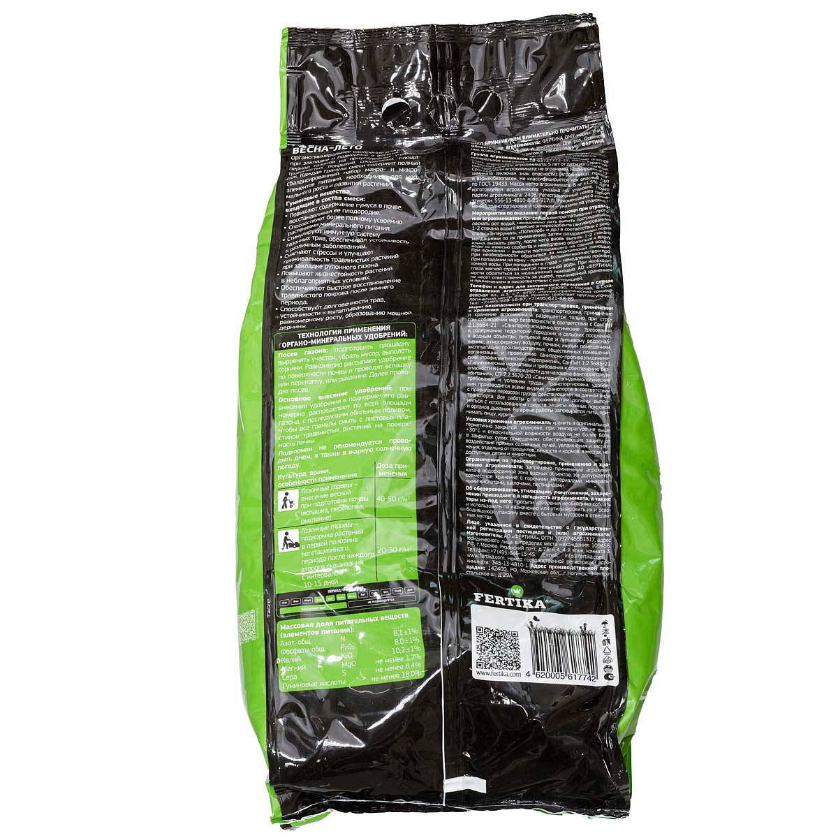 Органо-минеральное удобрение для внесения при закладке и подкормке в весенне-летний период газонов на приусадебных участках, травянистых покрытий спортивных площадок. Каждая гранула смеси содержит полный сбалансированный набор макро- и микро элементов питания, необходимых для нор мального роста и развития растений. Гуминовые вещества, входящие в состав смеси: