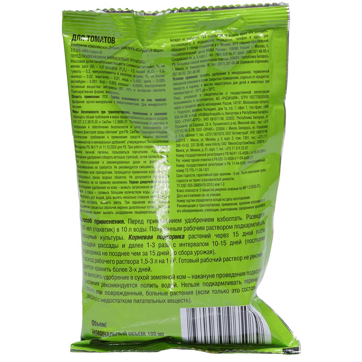 Удобрение содержит полный комплекс веществ,необходимых для полноценного и сбалансированного питания растений,способствует хорошему росту растений и получению высокого урожая.