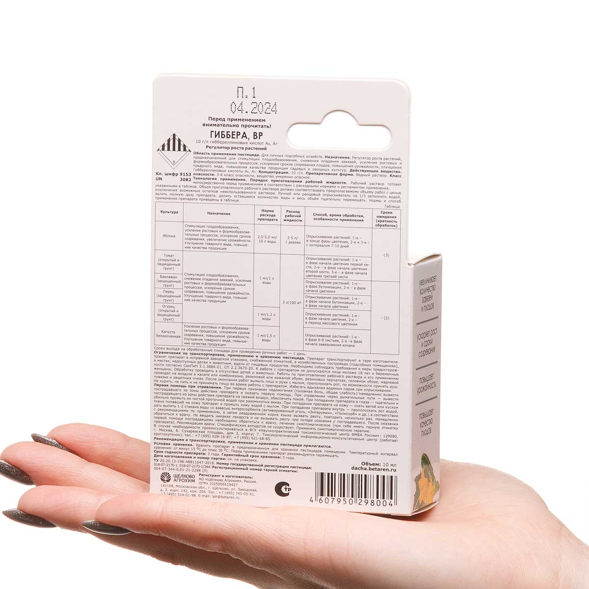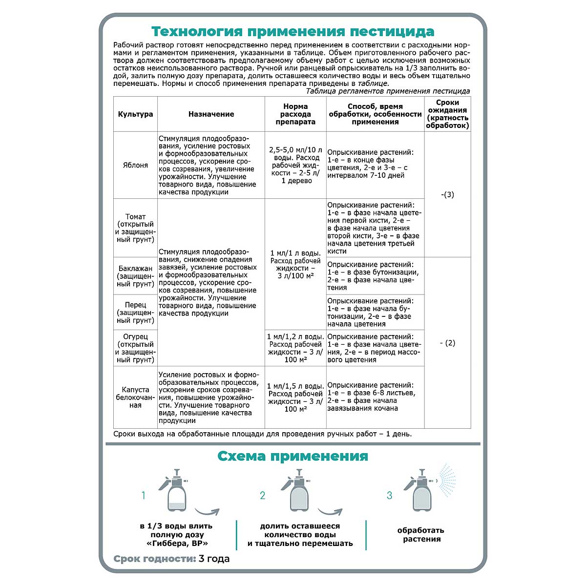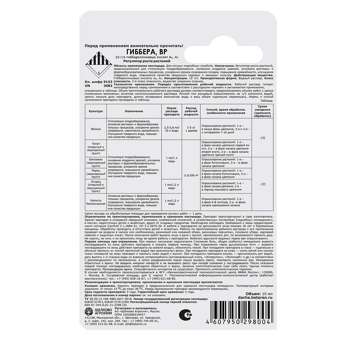 Регулятор роста растений Гиббера представляет собой концентрат. Рабочий раствор готовят непосредственно перед использованием. Подробная инструкция размещена на обороте упаковки. Средство стимулирует цветение и образование завязей, ускоряет рост плодов.