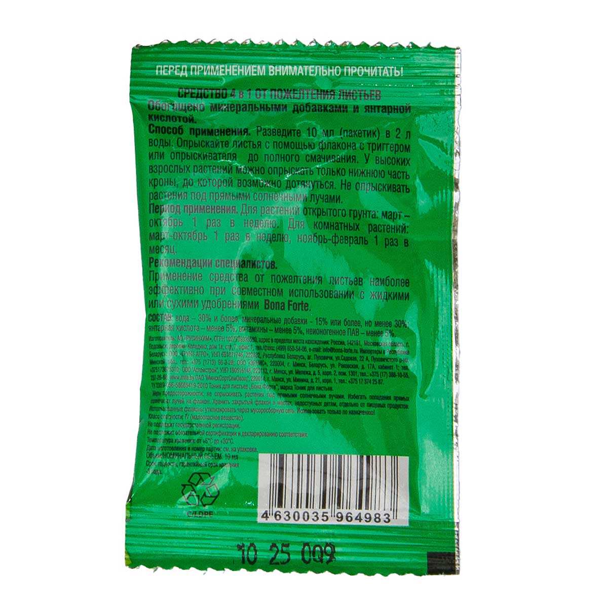 Средство создано лабораториями Bona Forte для стимулирования роста и усиления зеленого цвета листьев, предотвращения хлороза: