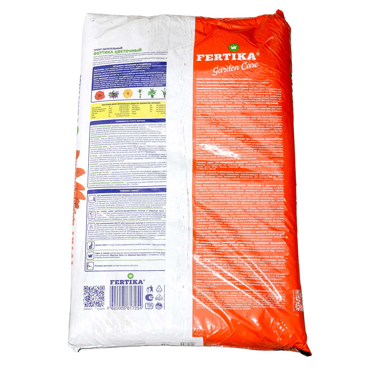 Грунт питательный содержит в своей основе смесь верхового и низинного торфа, добываемого в Северо-Западном регионе России, в благоприятном соотношении для растений с добавлением компонентов для улучшения физико-агрохимических свойств: глины, перлита, доломитовой муки, удобрения PG-MIX.