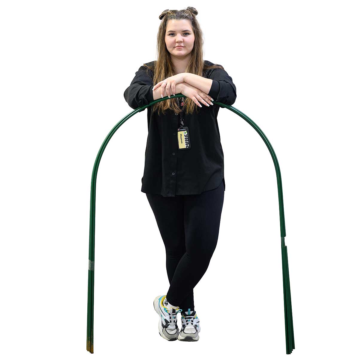 Дуга парниковая стальная трубка в ПВХ оболочке 5шт, длина 3м, 1,2х1м - это комплект дуг для создания парника. Дуги изготовлены из стальной трубки, которая покрыта ПВХ оболочкой. Комплект состоит из 5 дуг, длиной 3 метра каждая. Дуги используются для создания каркаса парника, который защищает растения от неблагоприятных погодных условий. Особенностью товара является его прочность и долговечность благодаря