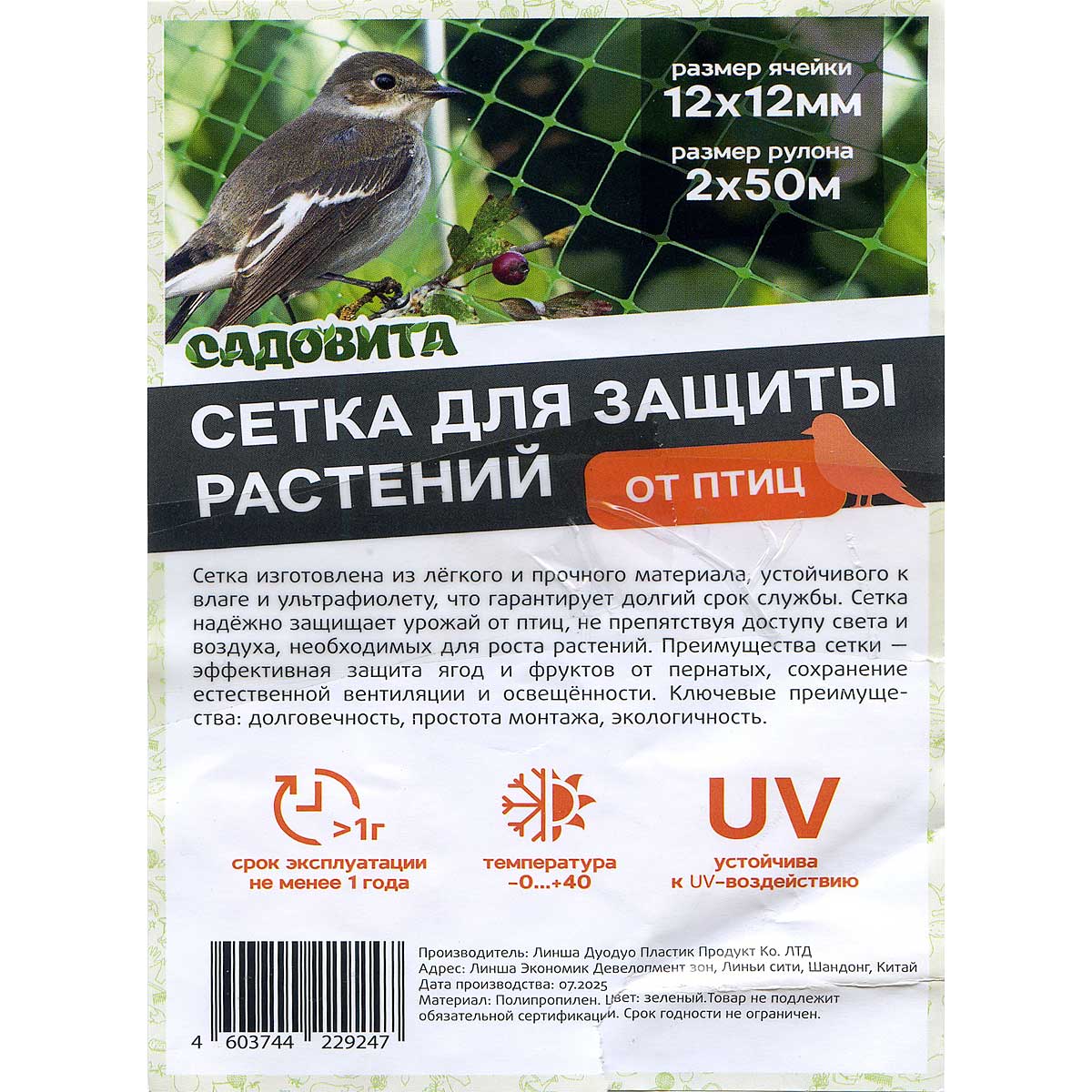 Сетка от птиц не имеет ограничений по применению. Она предназначена для защиты деревьев, кустарников, ягод, травянистых растений и любых других посадок.Универсальный материал может быть использован для защиты кровли, балконов и фасадов зданий от губительного воздействия птичьих стай. Плотность: 10гр/м