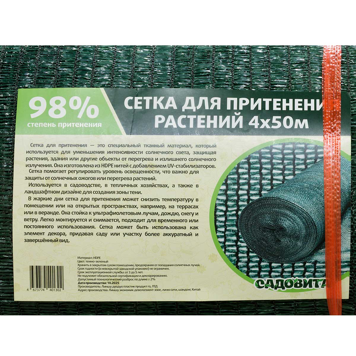 —Сетка для притенения 4*50м 98% зеленая САДОВИТА